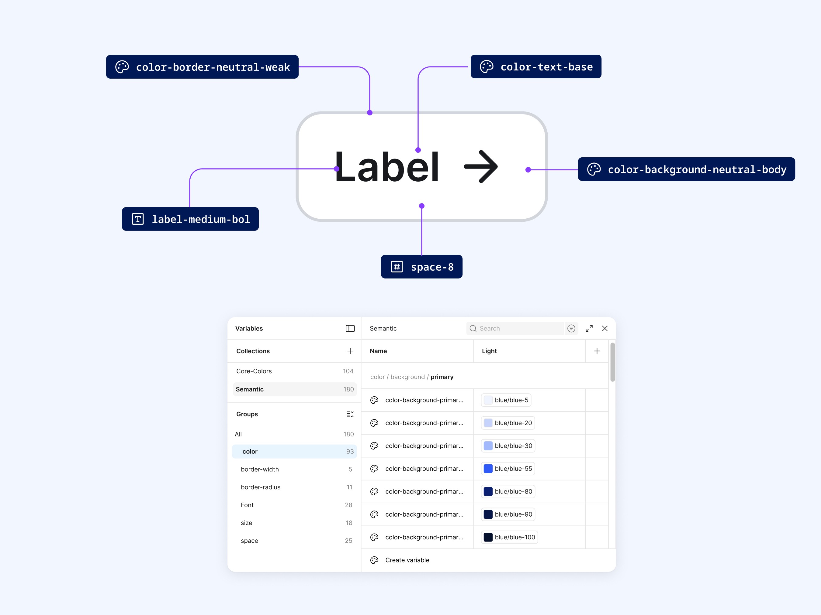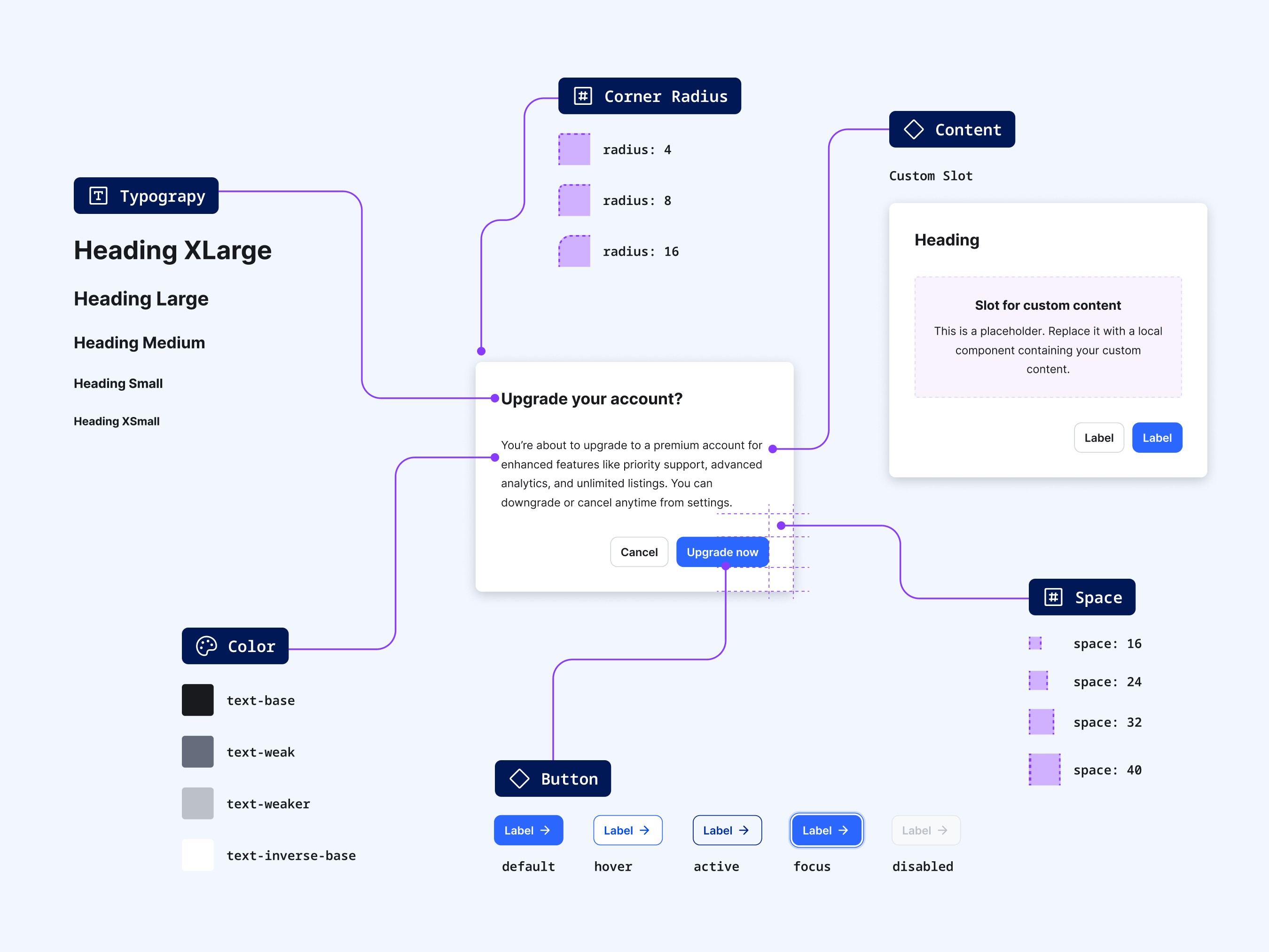 Library structure, token structure, UI components, accessibility, scalability